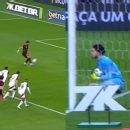 Aos 10 minutos, Breno Bidon foi derrubado por Léo Pereira dentro da área, e o árbitro assinalou pênalti. Na cobrança, o centroavante tentou uma cavadinha, mas falhou e viu Rossi, já sentado, segurar firme a bola.